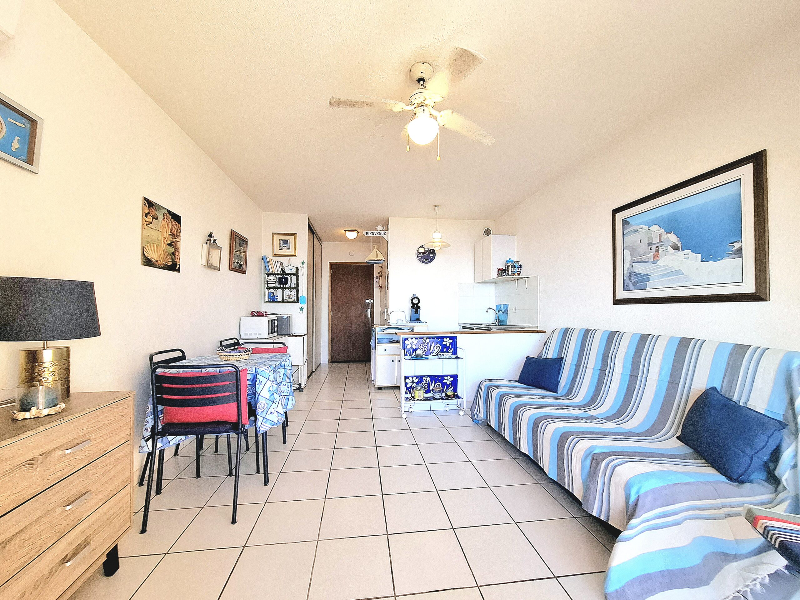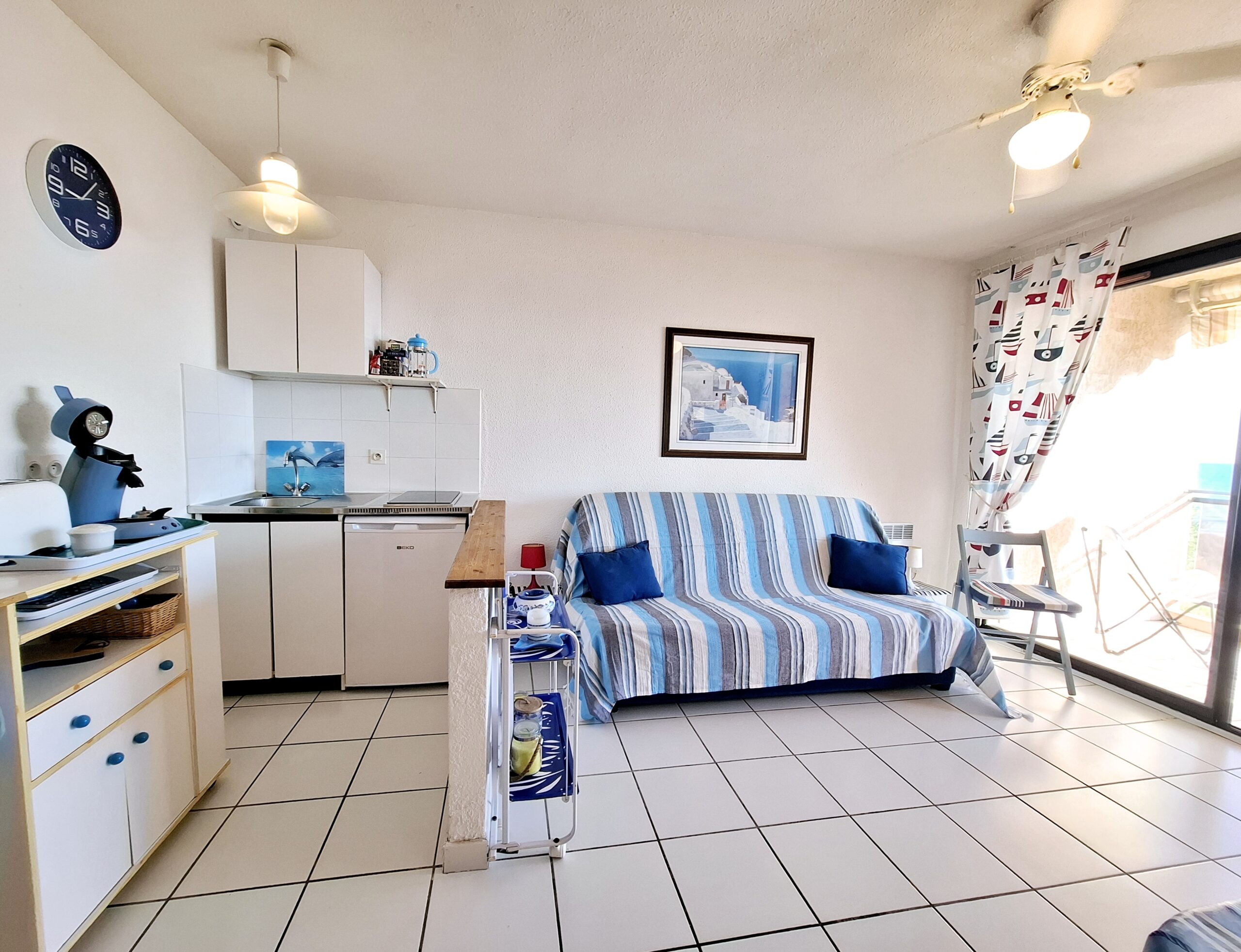 Studio idéalement situé. Les services de première nécessité tels que supermarché, pharmacie, etc. sont situés à 500 mètres. Que dire du panorama, payez chaque euro dépensé, vraiment fantastique. Le studio est meublé à thème marin, chaque lit superposé est pensé et rien n’est mis au hasard, la propriétaire a vraiment un excellent goût. Le canapé-lit est très confortable, la taille est celle d’un lit à la française, donc pas vraiment deux places mais une place et demie, pour deux adultes un peu petit mais pour une semaine cela peut aller. Nous avons voyagé avec une petite fille de 1 an et l’hôte nous a fourni le lit/lit bébé de voyage. L’hôte est vraiment gentil et sympathique, nous avons eu un problème de santé et il s’est fait à quatre pour chercher une solution pour nous. Seul bémol, il n’y a pas de wifi (nous le savions) mais nous pensions faire avec la 5G et au lieu de cela il n’y a pas de signal à l’intérieur du logement, un peu gênant de ne pas être disponible en 2024. Pour le reste, tout est super
